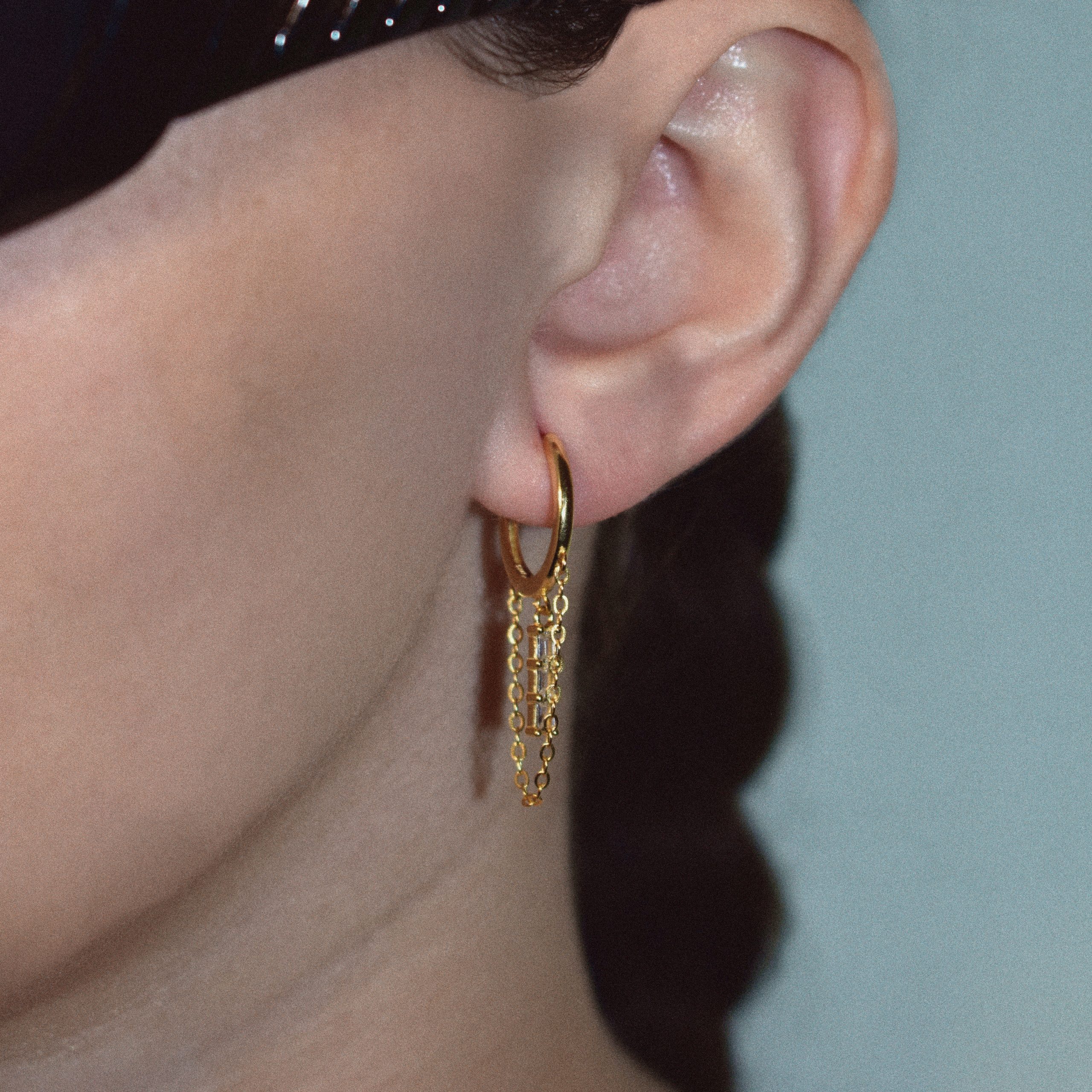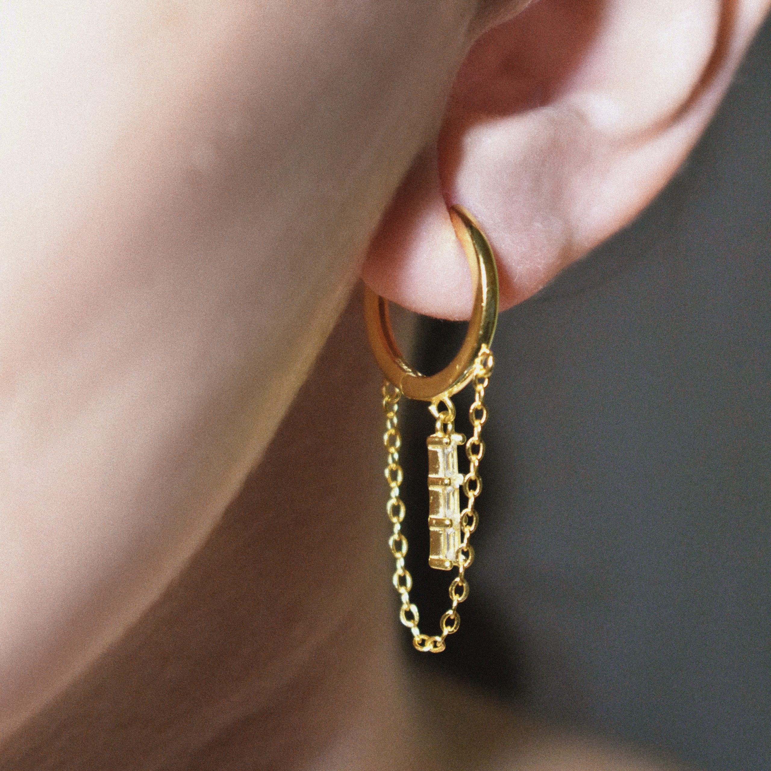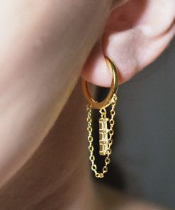 Aritos de 15mm con cadena y barra de circonitas