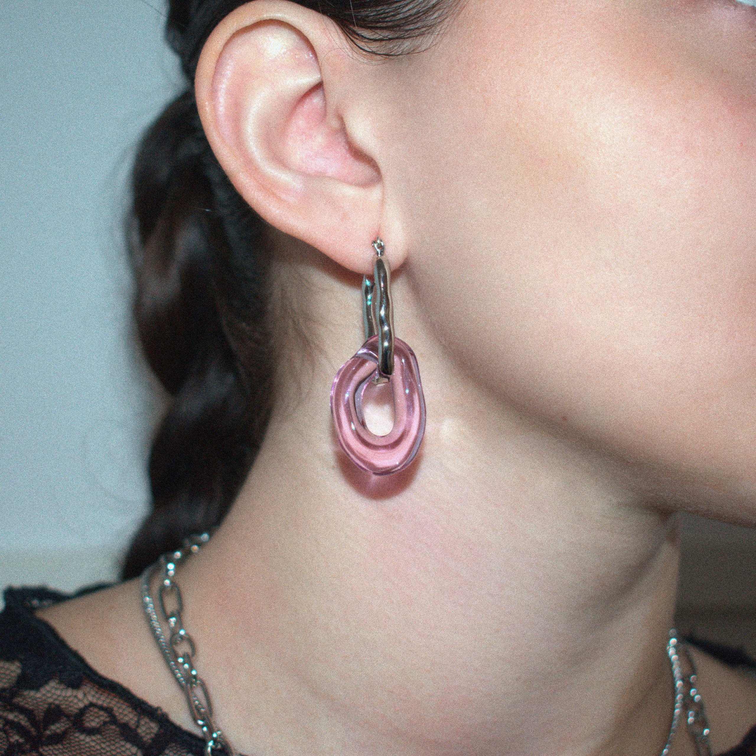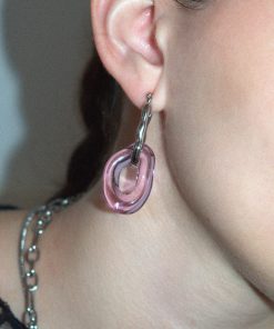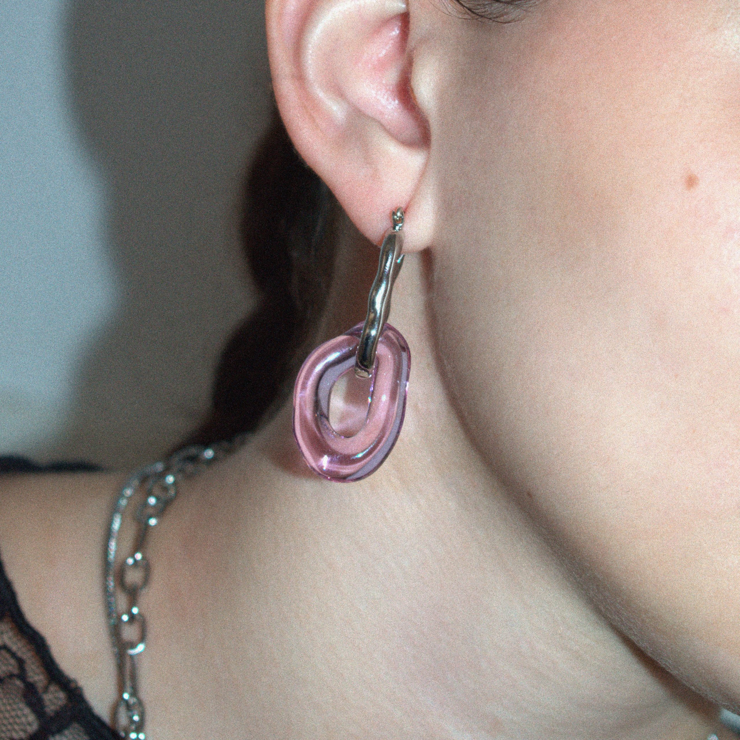 Pendiente de cobre con colgante de cristal que se puede quitar y poner.