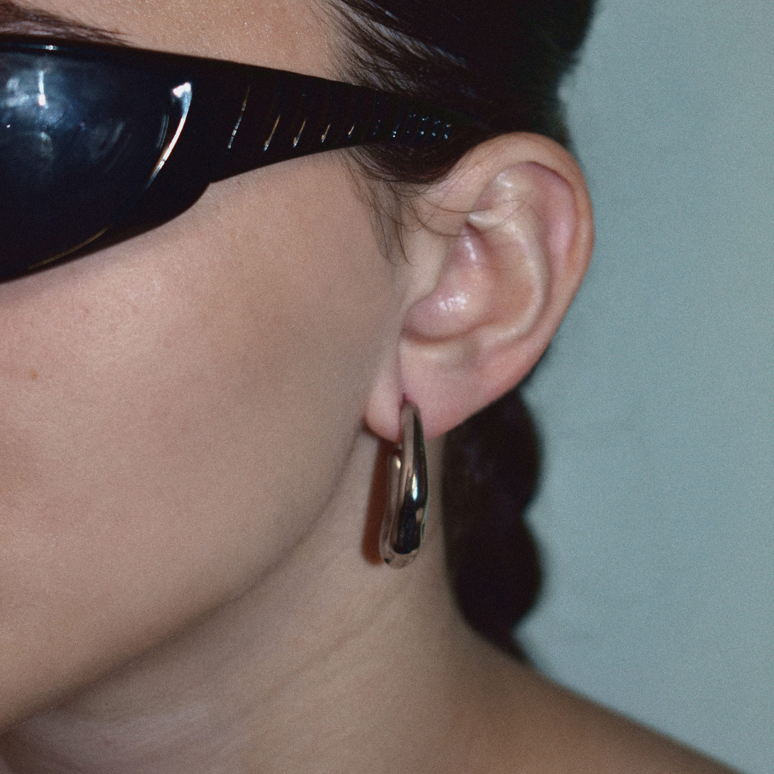 Pendientes asimétricos con forma de gota en acero inoxidable.
